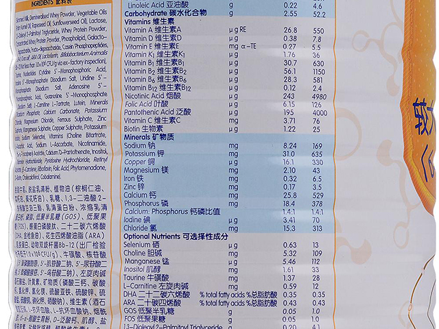 對於1段的嬰幼兒配方奶粉,國標是13種維生素+12種礦物質,這款都有新增的,還是不錯的。